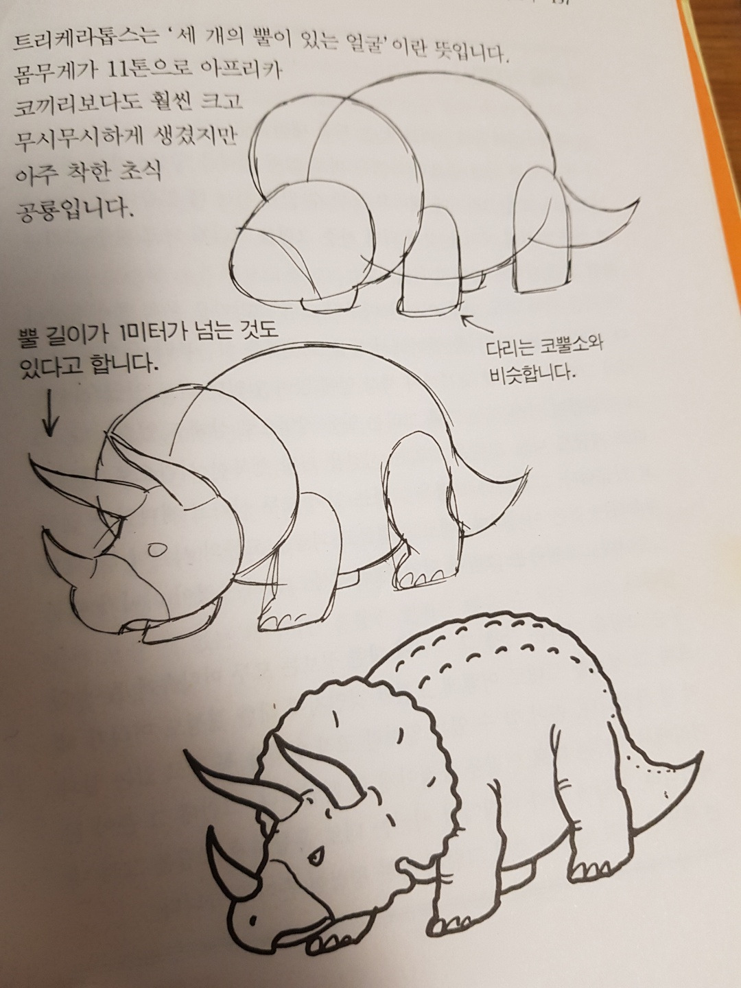 3) 마지막 장에 있는 트리케라톱스를 그리며 가볍게 마무리했다.