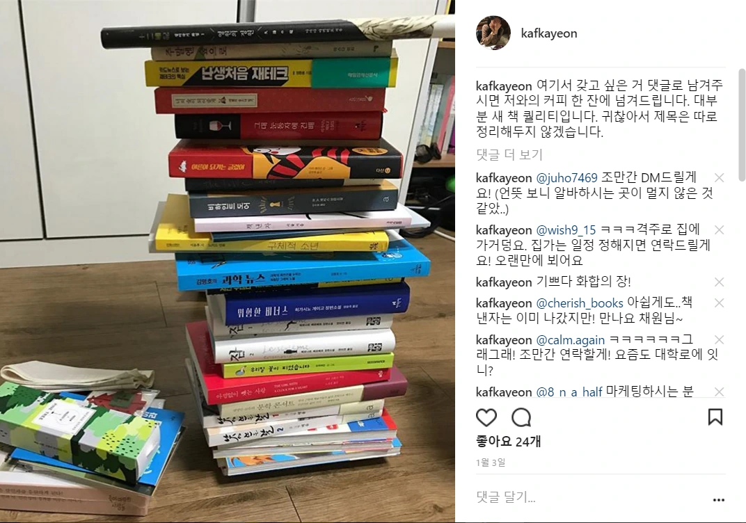 얼마 전, 묵혀둔 책을 정리한다는 명분으로 SNS에 책 나눔 게시글을 올려 여러 사람을 만난 일도 같은 이유였다. 자주 만나는 친구, 고등학교 졸업 후 처음 본 동창, 만난 적 없이 '좋아요'로만 소통해본 SNS 지인 등 다양한 사람을 만났는데, 우습게도 첫 인사는 대부분 "잘 지내세요?"였다. 평소라면 '잘 지낸'다며 그저 가벼운 인사로 넘겼을 텐데, 요즘의 나는 도통 그럴 수가 없었다. 상대방을 곤란하게 만드려던 건 아니었는데, 매번 이렇게 되묻고 말았다.