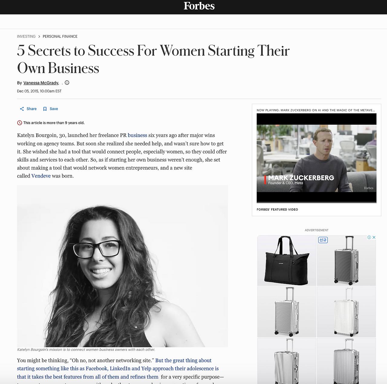 Katelyn의 창업 여정은 첫 스타트업 Vendeve의 실패에서 시작돼요. 2014년, 그녀는 여성 기업가들을 위한 플랫폼 서비스를 론칭했어요. Forbes에서 "여성 기업가들을 위한 차세대 LinkedIn"으로 소개될 만큼 출발이 좋았죠.