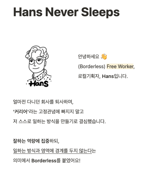 -로컬기획자, 한스의 포트폴리오: 한스네버슬립