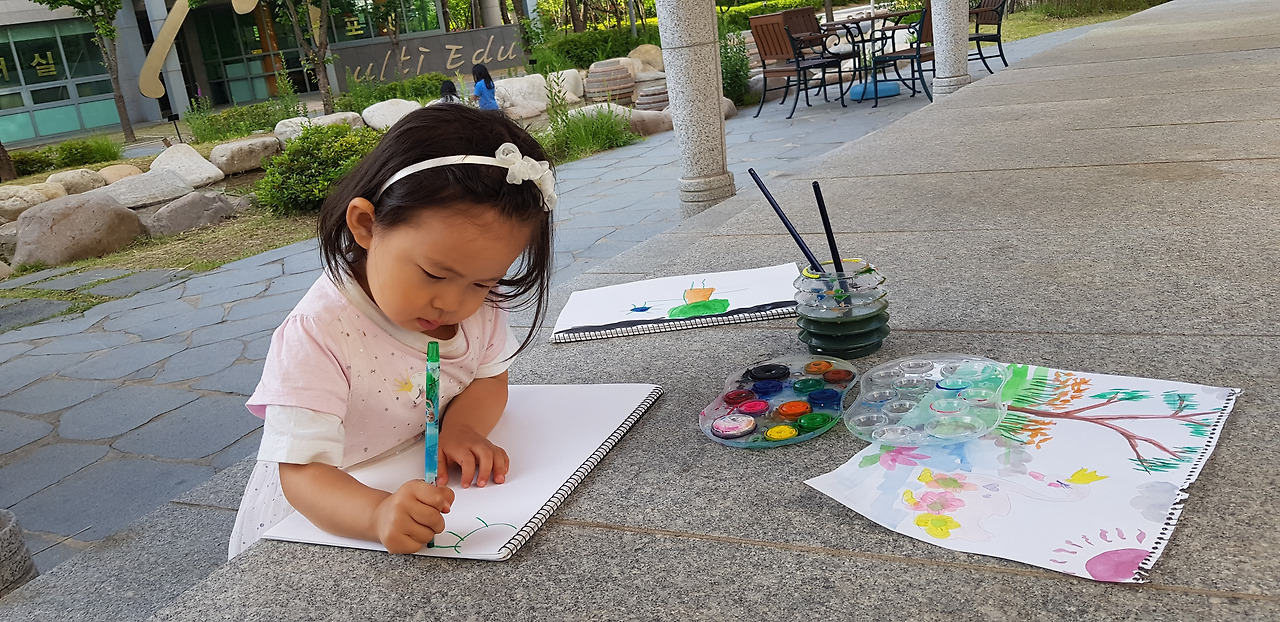 채윤이를 키우면서 나의 즐거움은 10배가 되었다. 채윤이 덕에 그림 그리기의 즐거움을 알게 되었다. 그림을 그리려면 사물을 유심히 관찰해야 하는데, 덕분에 당연시하던 나의 물건을 더 열심히 보게 되었고, 나무, 풀, 꽃 등 자연도 더 애정을 가지고 바라보게 되었다. 역시 오래 보아야 예쁘다는 말이 맞다. 관찰하면 할수록 자연은 신비롭고 아름답다. 채윤이와는 어딜 가도 종이와 펜만 가지고 가면 즐겁게 시간을 보낼 수 있다. 이 어린 꼬맹이와는 단둘이 카페에 가는 게 너무나 즐겁다. 비가 오나 눈이 오나 채윤이와는 행복하게 시간을 보낼 수 있어서 너무 좋다. 시간을 이렇게 유쾌하고 생산적으로 보낼 수 있다니. 난 왜 그동안 그림 그리기를 모르고 살아왔을까.