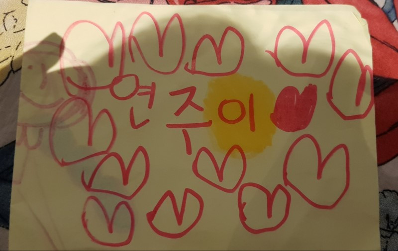 사랑가득한 그녀의 편지만 3세인 그녀. 나의 사랑 딸이 유치원에 다녀와서 내게 열어보라면서 종이를 주었다. 겉에는 하트가 뿅 뿅뿅뿅 그려져 있고, 이연주라는 천진난만한 글씨체로 내 이름이 쓰여있고,
