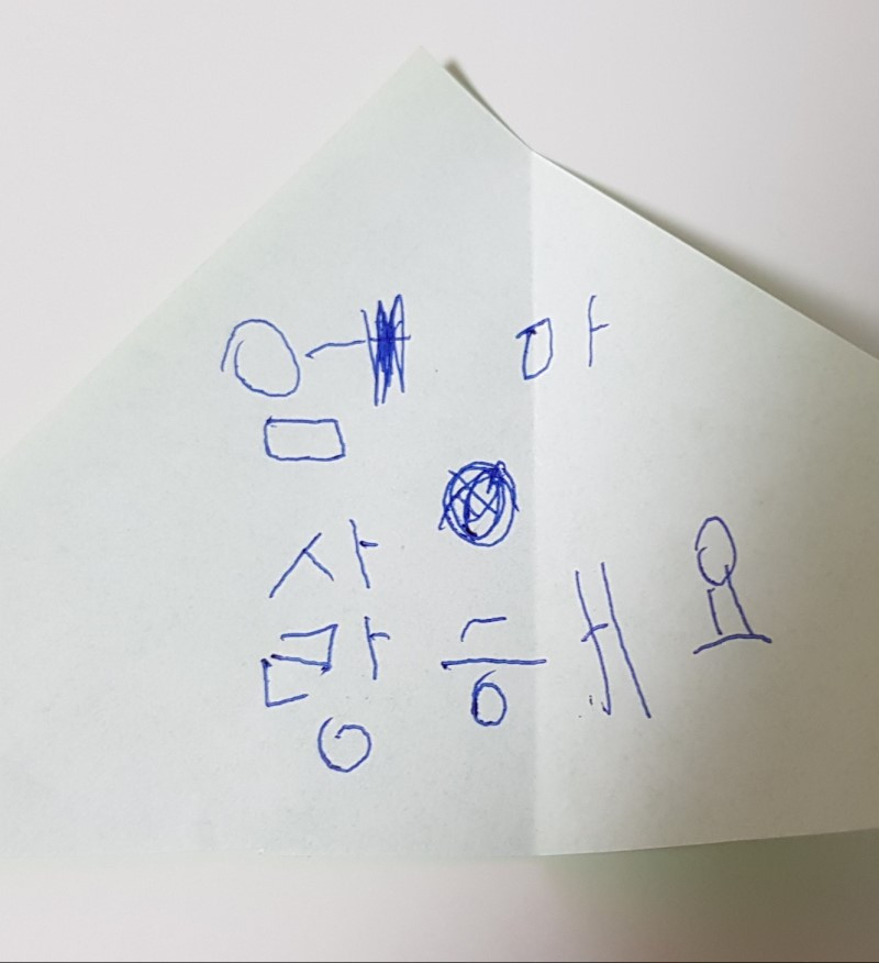 그런데 사랑해요의 '랑'자가 좌우가 바뀐 걸 보더니 나에게 생전 편지를 쓰지 않던