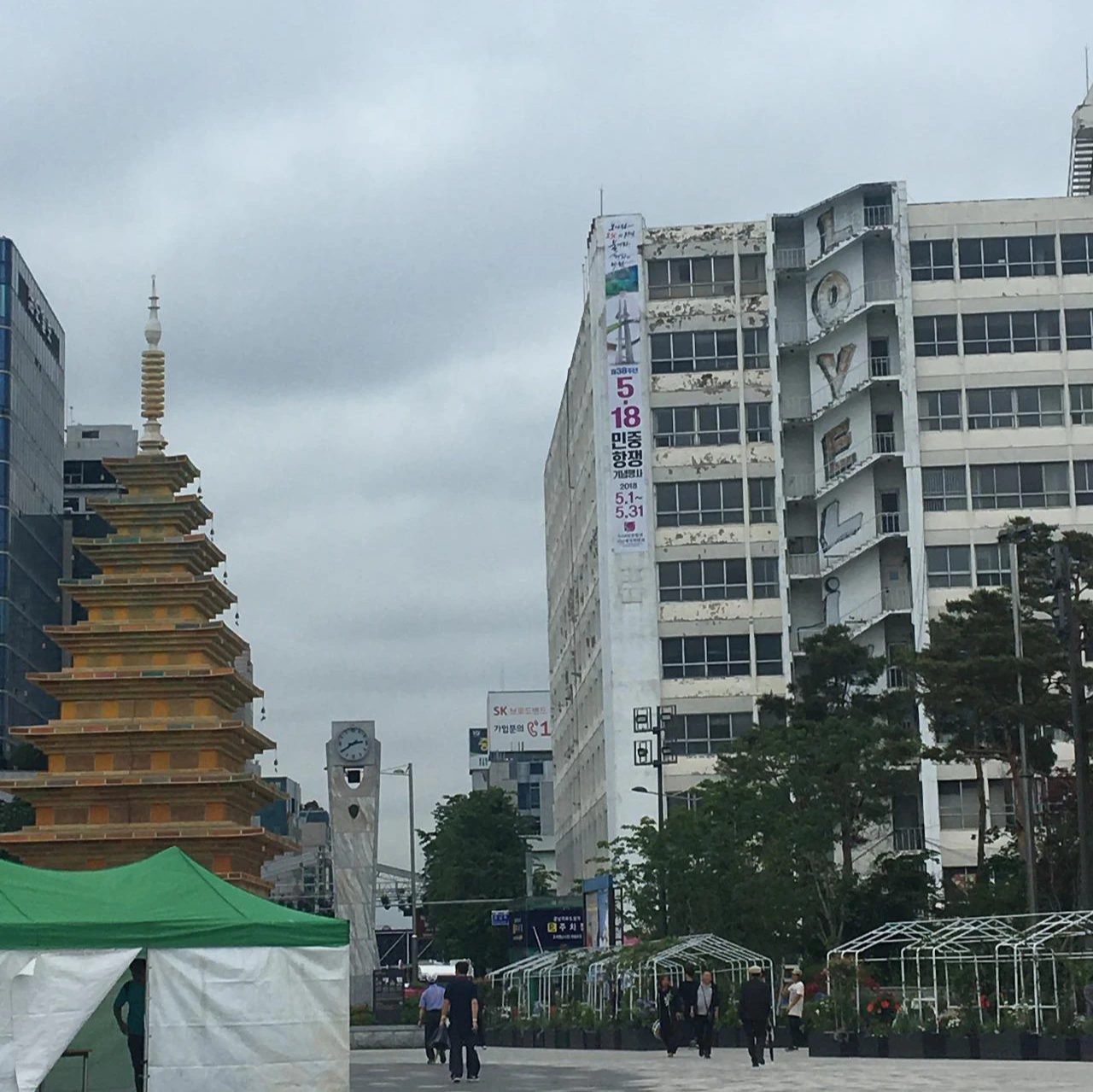 빵과 달걀, 커피로 간단한 조식을 먹고 아침 산책에 나섰다. 전날 받은 양림동 가이드북을 들고 무작정 걷다 보니, 우일선 선교사 사택, 다형 김현승 시비, 호남신학대학교를 차례로 만난다. 길을 따라 위로 올라가니 사직공원에 이르렀다. 거대한 전망타워가 먼저 보이고, 사직단이 아래 자리하고 있다. 전망타워는 9시부터 밤 10시까지 개방해 그 사이 누구나 이용할 수 있다. 아침이라 아무도 없어서 나 홀로 광주 시내 전경을 감상했다. 이미 빗방울이 하나둘 떨어지는 흐린 날씨라 멀리 무등산까지 볼 수는 없었다. 그러나 그 나름의 운치. 5.18 광주의 흐린 아침이 기억에 많이 남는다.