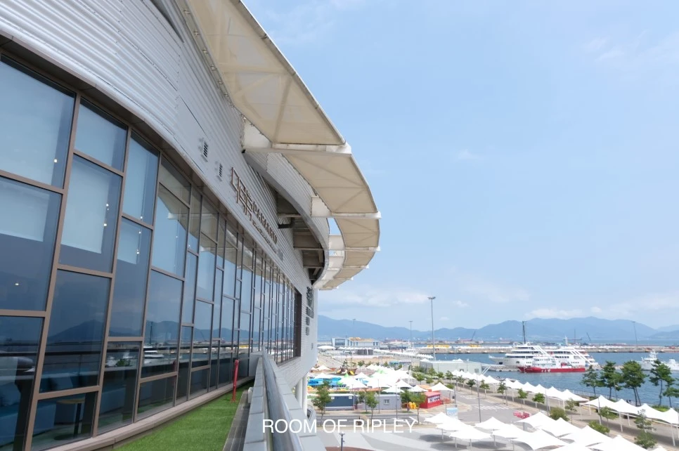 여수 엑스포 건물 D동에 위치한 여수 다락휴. KTX에서 내리면 도보 5분 안에 닿을 수 있다.