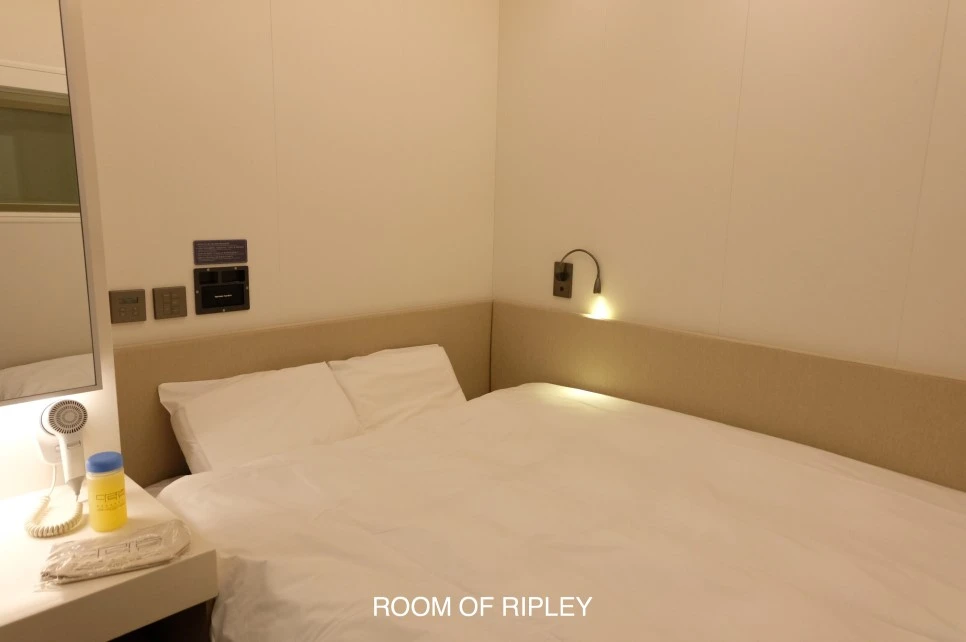 캡슐호텔을 표방하고 있으니 좁은 게 당연하고, 엄밀히는 캡슐호텔이라기엔 넓다는 생각.