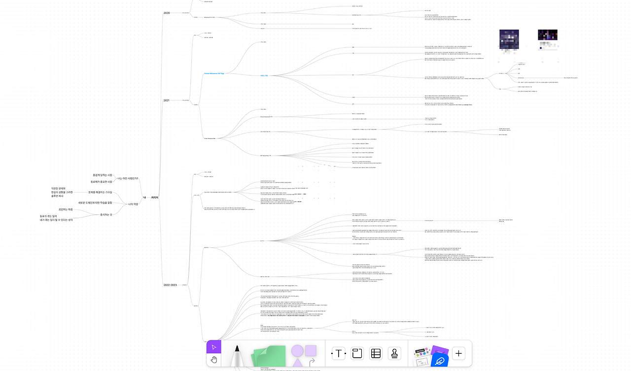 그래서 나는 무작정 글을 쓰기보단, 마인드맵으로 시작했다. 떠오르는 것들을 마구 적은 후에 하나씩 연관된 것들끼리 묶어보면 글의 재료가 나왔다. 이 과정은 1탄에서 자세하게 적어두었다.