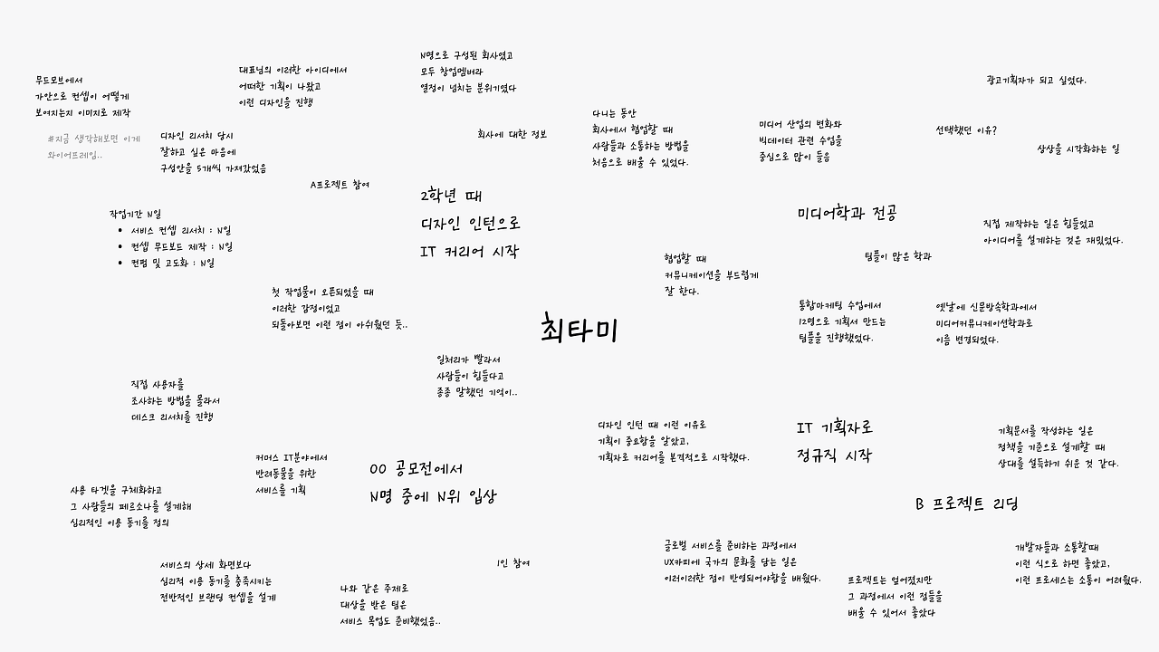 '다들 자신이 프로젝트 업무한 자료들을 가득 보여주거나, 프로젝트 성과를 막 쓰잖아요. 근데 그건 그 사람만의 성과가 아니라 회사의 성과니까...'
