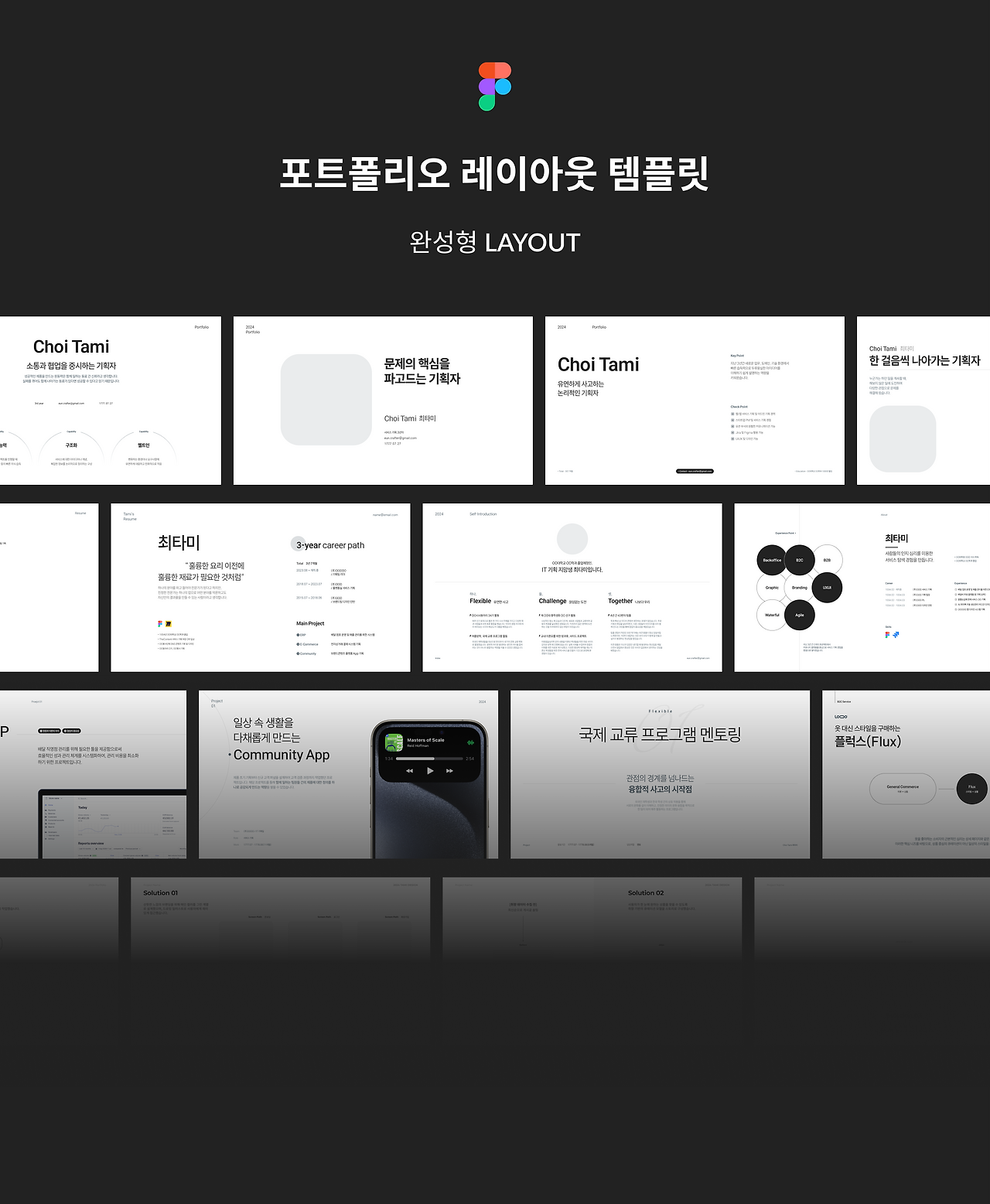 그래서 예전에 작성한 레이아웃 템플릿에서, 실제 포트폴리오로 제출했던 나의 작업 내용을 공유하기로 했다. 프로젝트 경험마다 구성이 달라지는 것을 알기에, 사용하는 사람들의 케이스에 맞춰 활용할 수 있는 템플릿을 제작했다. 무엇보다 해당 템플릿으로 감이 잡힐 수 있도록 작업했다.