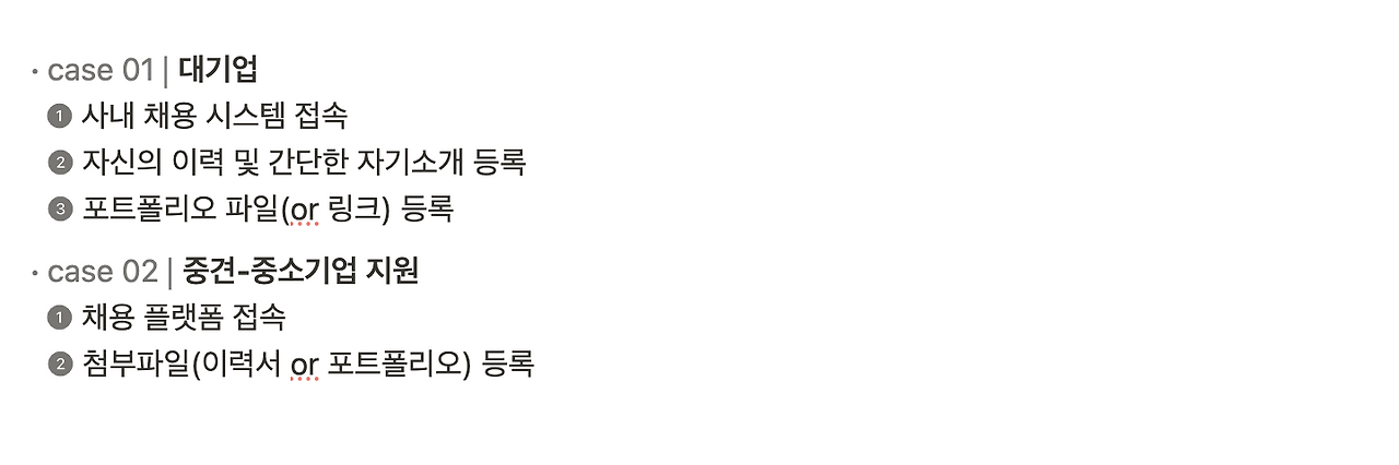 기획자인 나는 프로젝트의 결과물이 디자인으로 있지만, 기획의 작업 과정을 시각적으로 보여줘야 했다. 기획자 직무 특성상, 채용자는 기획자가 어떤 논리로 제품을 기획했는지 보고 싶어 하기 때문이다. 혹시 나처럼 디자이너가 아닌 분들이 있다면, 시간이 오래 걸리더라도 자신의 스토리에 맞추어 작업하길 추천한다.