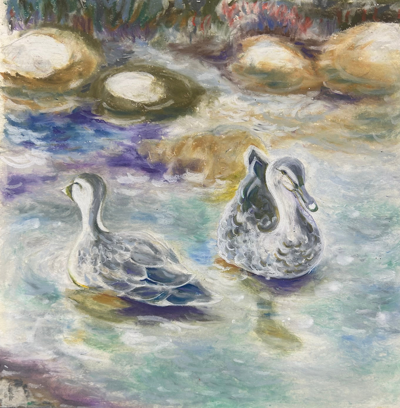 찬 물결에도 햇빛은 비춰 반짝거렸고 여러 마리의 오리들과 두루미가 참방거렸다. 걷다가 멈추기를 반복하며 그들이 노는 걸 한참을 바라봤다.