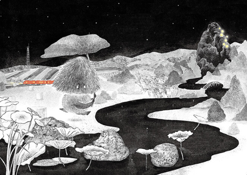 그림은 먹으로 뭉글한 질감과 섬세한 선으로 풀어내고 절제된 여백을 두어 상상력을 자극합니다. 친구를 사귀고 싶은 도롱이의 간절한 마음을 응원하게 합니다.
