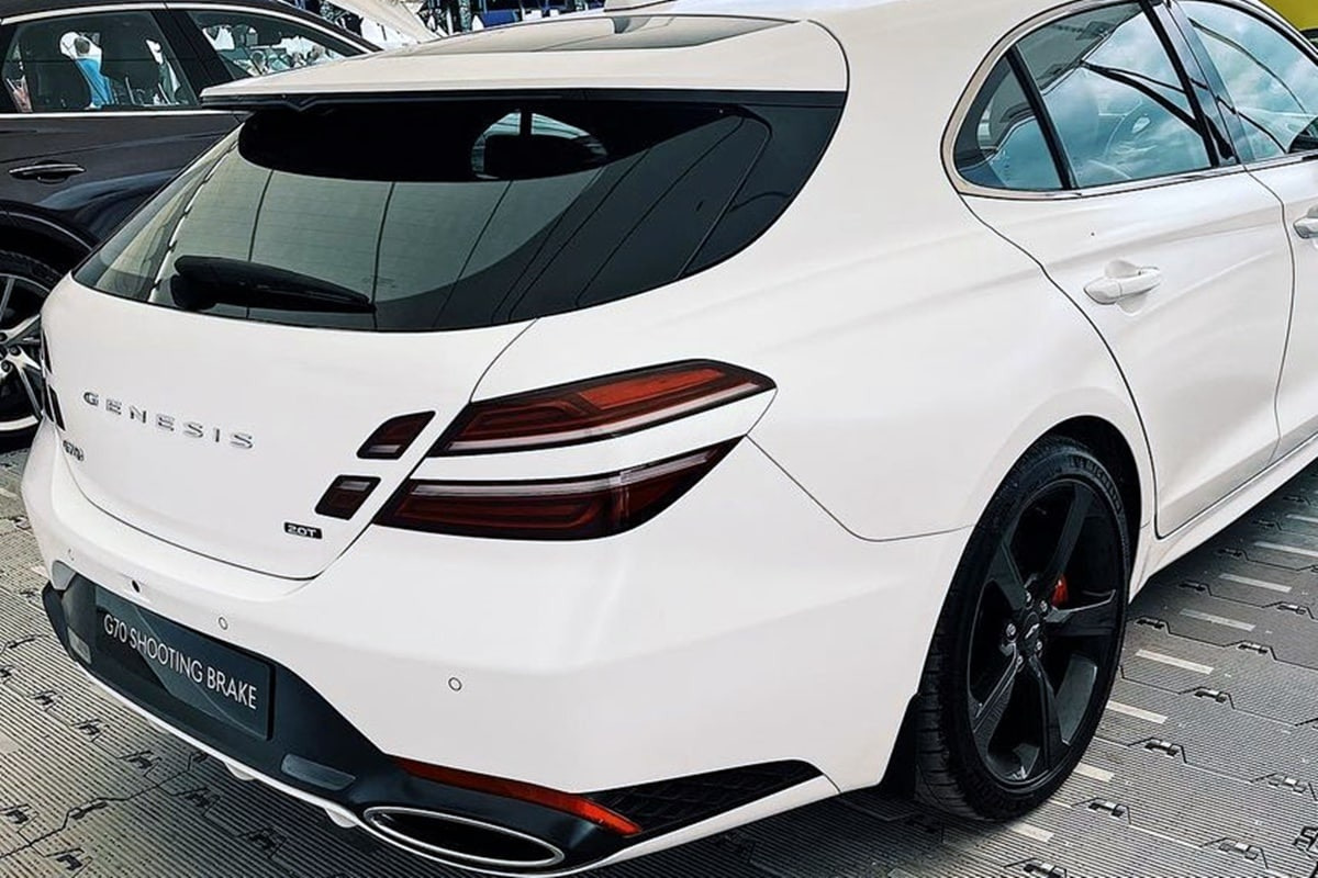 G70 슈팅 브레이크는 제네시스가 지난해 출시한 더 뉴 G70의 외관을 기반으로 제작됐다. G70 부분변경에는 제네시스의 디자인 언어인 2줄이 강조된 쿼드 헤드램프 및 리어램프가 반영됐다.
