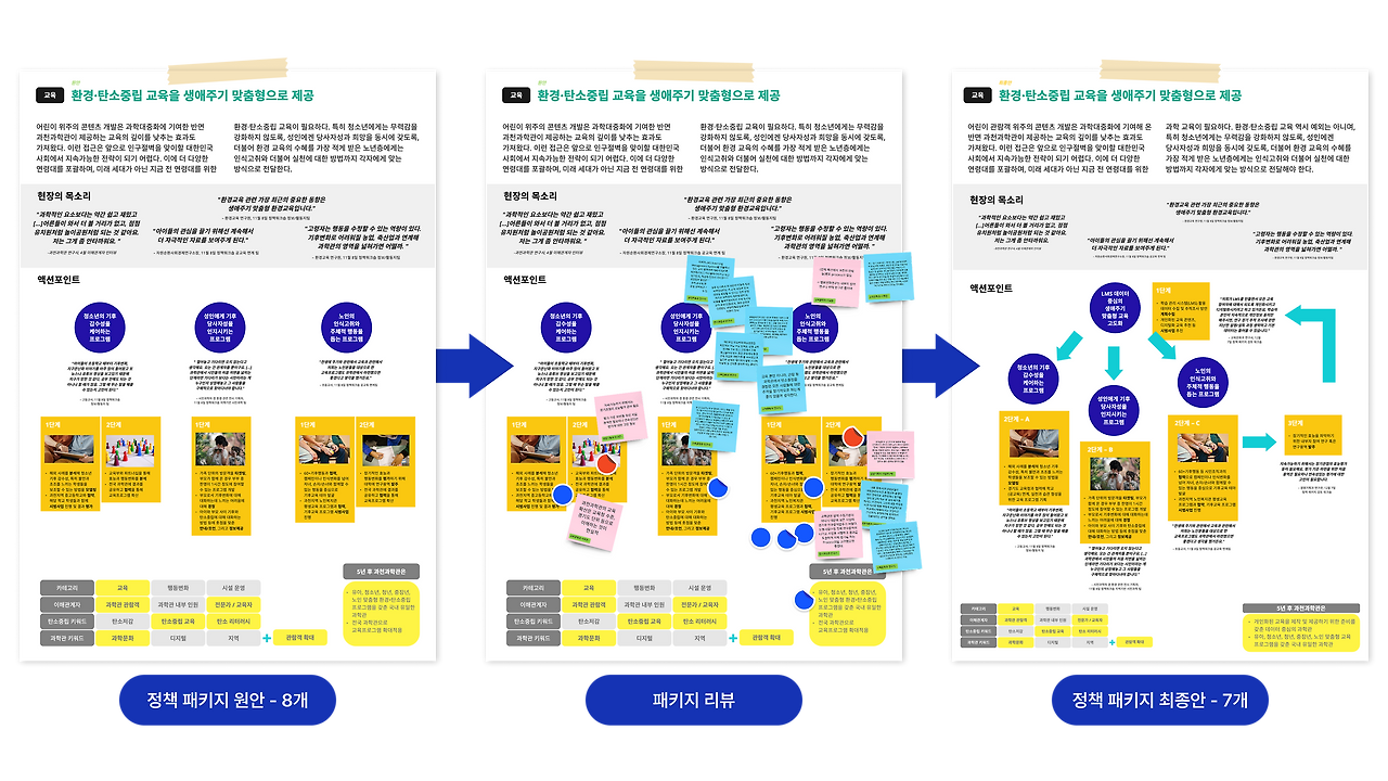 참가자들은 각 정책 아이디어의 실현 가능 여부에 대한 조언을 주었으며, 아이디어를 어떤 순서로, 어떤 기관과 협력하여 실행할 수 있을지에 대한 구체적인 피드백을 제공했다. 간담회의 정책 패키지에 대한 검토를 바탕으로 7개의 패키지를 최종 선정하여 2024년 1월, 과학관의 의사결정권자들에게 전달했다.