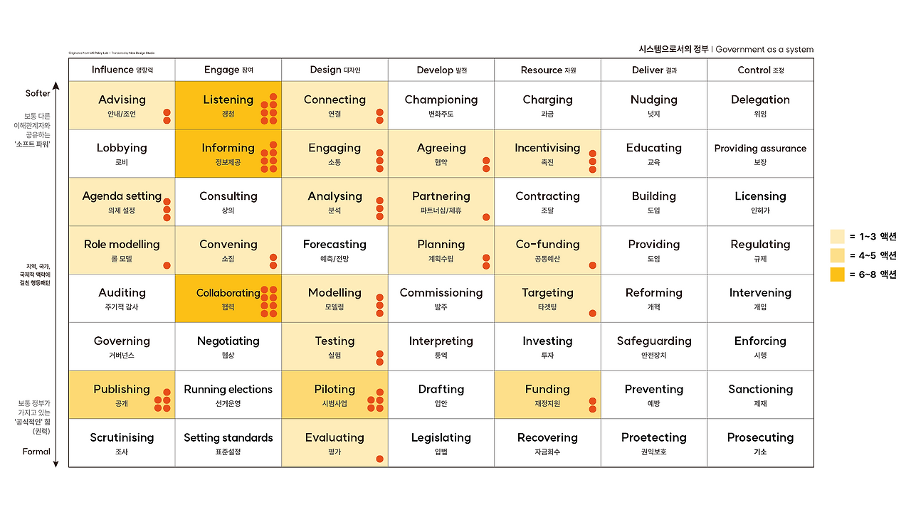 7개 정책 패키지의 실행 방안을 폴리시맵의 GaaS 툴킷에 히트맵 형태로 매핑한 결과 다수의 아이디어가 과학관의 전문성을 바탕으로 한 안내와 자문, 정보 제공에 초점을 맞추고 있었다. 외부 전문가와 시민의 의견을 경청하고, 이들과 협력하며 소통하는 과정에서 새로운 사례를 만들어가는 것 또한 중요하게 여겨졌다. 앞으로 GNSM이 다양한 외부 기관과 함께 협업 프로젝트나 활동을 추진하고, 새로운 목표 설정과 확산하는 노력이 필요하다는 방증일 것이다.
