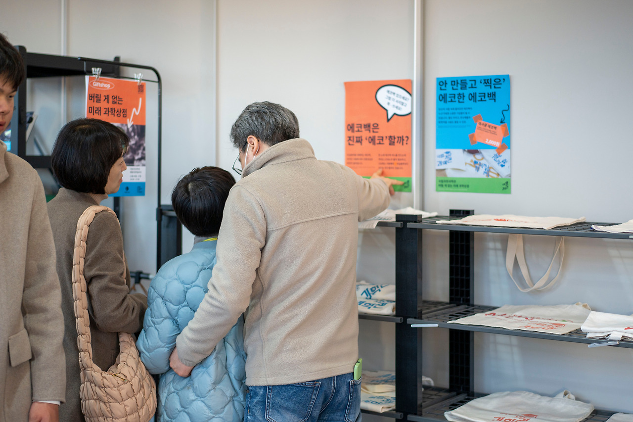 또한 에코백의 환경적 의미를 설명하는 포스터를 상점에 비치하고, 사용하지 않는 에코백을 기부할 수 있는 코너도 마련하여 방문객들이 재자원화의 순환 구조를 직접 체험할 수 있도록 했다. 결과적으로 과학관의 특색을 살리면서도 환경 순환의 의미를 상기시키는 새로운 기념품 판매 방식을 테스트할 수 있었다.
