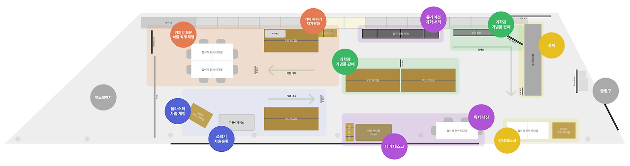 위 공간 구성을 토대로, 기존 기념품점의 문제점을 개선한 과학상점이 방문객에게 과학적 영감과 환경적 가치를 효과적으로 전달하기 위해 어떤 시도가 있었는지 세 가지 질문을 중심으로 설명한다.