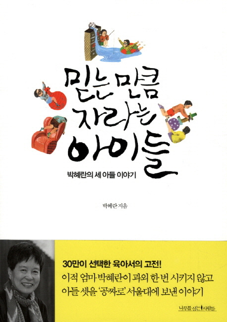 하지만 나는 지금 당장의 신간보다는 20년 전에 발간되었던 그 책이 더 궁금했다. 읽더라도 <믿는 만큼 자라는 아이들>을 먼저 읽고 신간을 보겠다는 나름의 순서를 정한 것이다. 할머니의 마음보다는 엄마의 역할을 아는 게 우선이라고 할까. 그런데 엄마의 역할이라 하기엔 이 분 뭔가 좀 독특하시다. 삼 형제에게 누누이 너희 인생은 너희가 사는 것이라며 아이들을 스스로 크게 했다 하니 뭔가 좀 얻을까 싶었던 엄마들 다들 놀라지 않았을까? 지금의 나처럼 말이다.