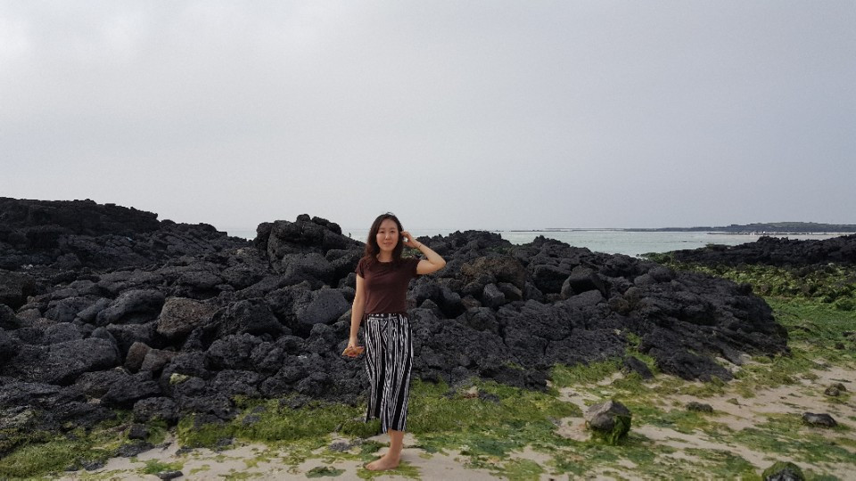 내 말의 뉘앙스를 알아챈 남편은 고대로 처제에게 전하라며 짧은 서운함을 내비쳤지만 굴하지 않고 주변 해변가로 나를 안내했다. 그곳은 다름 아닌 김녕 해수욕장이었다. 물빛이 옅고 해안선이 고왔다. 아, 여기가 김녕이구나. 보자마자 신혼 초 부모님을 모시고 왔던 곳이라는 기억이 떠올랐다. 저기서 멍게 먹었었고, 예전엔 이름도 제대로 모르고 지나쳤는데 이젠 다 알 것만 같은 기분과 몰랐던 때와의 기억이 뒤엉켜 감회가 새로웠다.