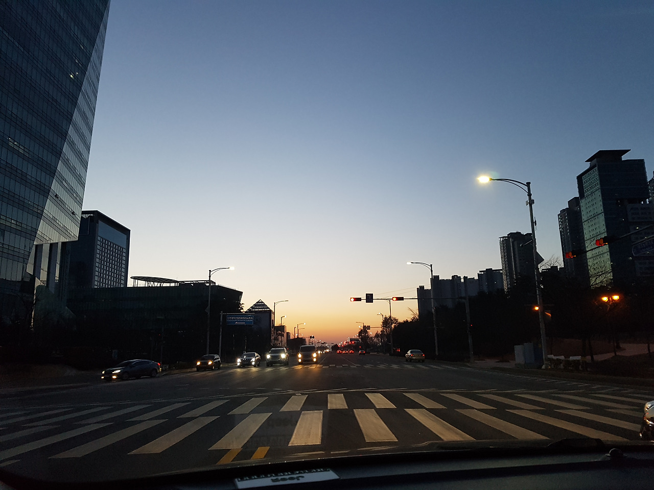 새벽반 영어수업을 듣기 위해 신호대기중, 2월 송도의 아침