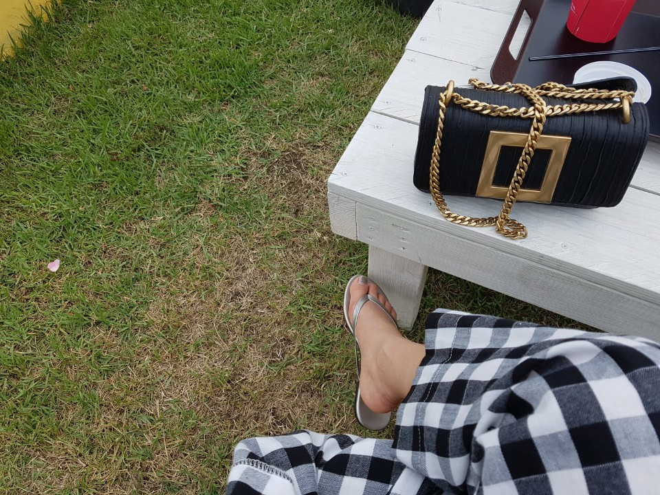 그래서 이 옷을 구입한지는 꽤 되지만 실제로 입은 건 손에 꼽을 정도였다. 그것도 잠깐씩 입고 외출했다 결국 갈아입길 반복해서 실제 이 옷을 입고 괜찮다 싶은 사진을 처음 찍은 건 2년 전이었다. 경기도 양평에 집을 지어 이사를 들어간 지인분은 한 달에 한 번 있는 독서모임을 집에서 가질 수 있도록 초대해 주셨다. 아담하게 지은 2층 집은 예쁜 것과는 별개로 너무나 실속 있게 지어져 감탄을 자아냈다. 특히나 집 앞에 데크를 멋있게 깔아 날 맑은 날 햇살 가득 받으며 호사를 누리게 했다. 준비된 음식마저도 너무나 정성스럽고 맛깔스러운 데다 좋은 것만 눈에 담으며 기분 좋았던 그 날, 한 명 한 명 돌아가며 나눈 대화가 아직도 선명하다.