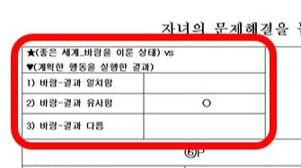 7. 마지막 실천 결과의 수준을 확인한 부분입니다. 6번의 실천 결과가 처음 바람(WANT)과 얼마나 일치하는지 확인하는 것입니다. 준수한 수준이죠?