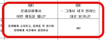 행동하기는 문제가 되는 상황을 그동안 어떻게 대처했는지 물어보면 됩니다. M의 경우 동생이 노는데 방해를 하면 "소리 지르고, 툭 치고, 엄마에게 서운해서 울었다"라고 했습니다. 즉, 동생과 싸우게 되고 엄마에게도 혼나게 되는 상황입니다. 이 상황이 자신이 원하는 바(혼자가 노는 것을 동생에게 방해받고 싶지 않은 상태)로 된 것인지 묻습니다. 답은 역시 "no"입니다.