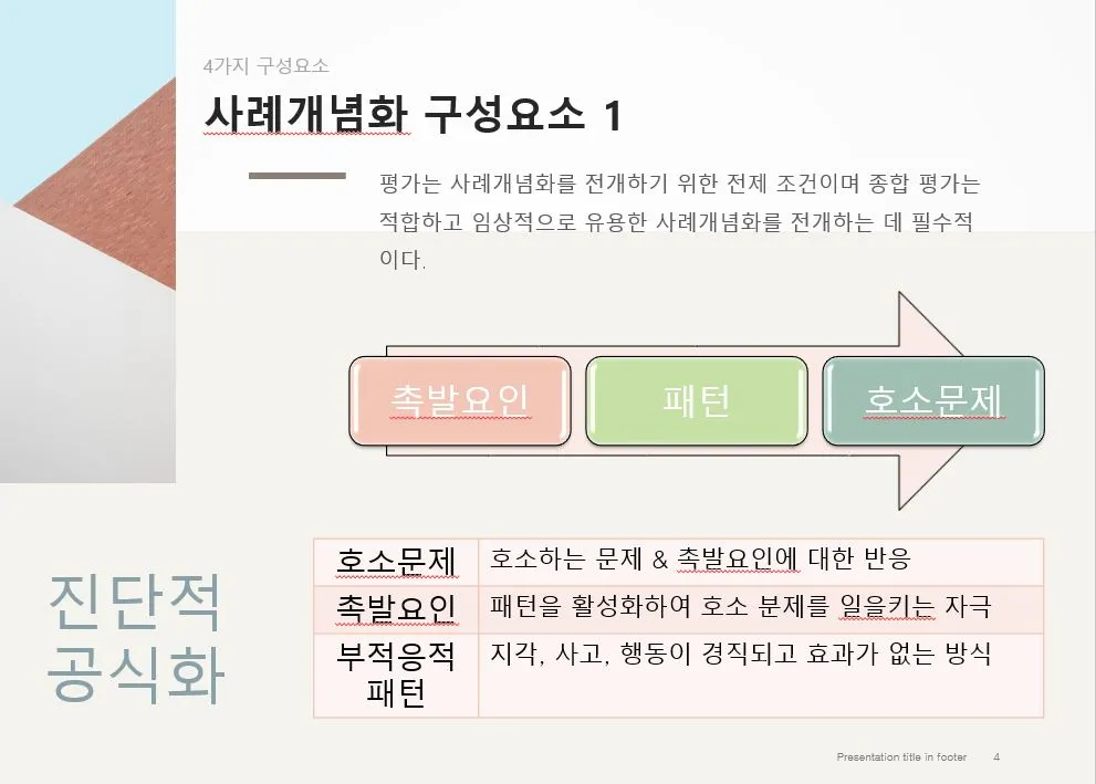 촉발 요인, 부적응적 패턴, 호소문제이다.
