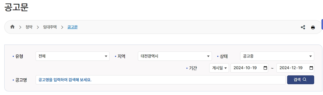 청약 > 임대주택 > 공고문 카테고리에 들어간다.