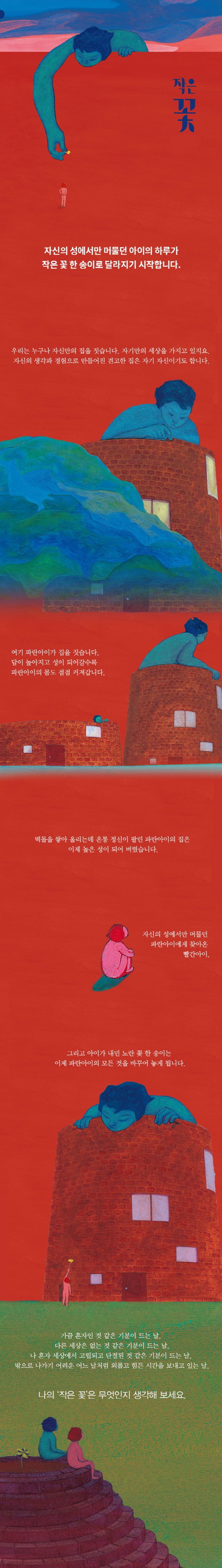 그 모든 어떤 날에 읽어도 나를 변화하게 하는 힘이 어디서 시작되는지, 관계는 어떻게 시작되는지, 나의 ‘작은 꽃’은 무엇인지 생각해 보게 되는 그림책이다.