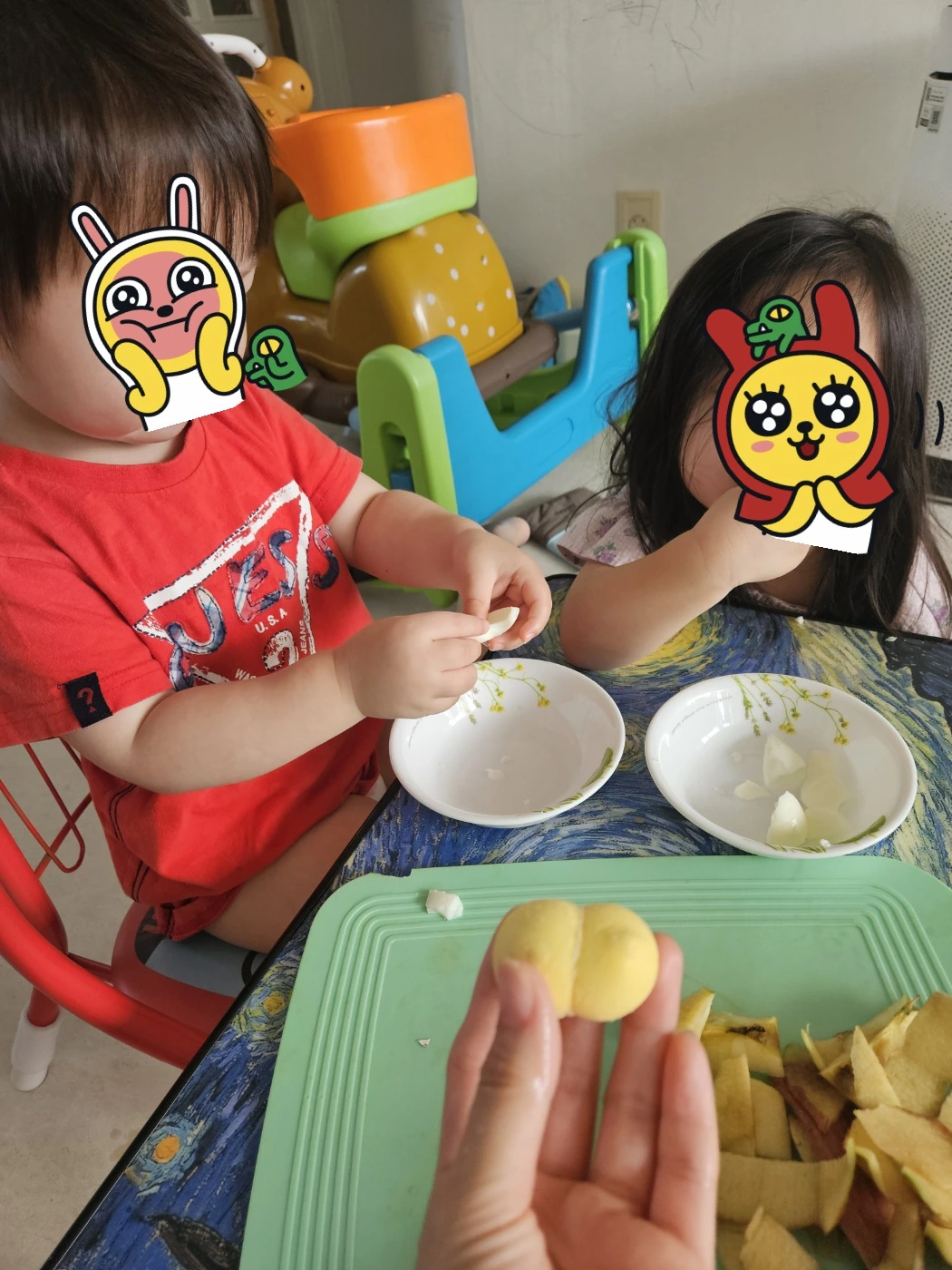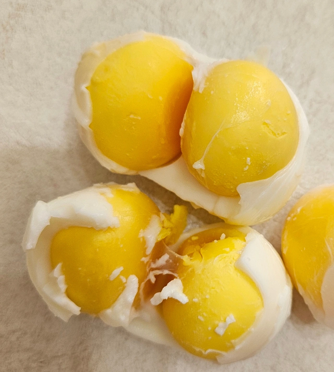 반질반질한 달걀을 아이들이 먹기 좋게 손으로 조금씩 떼주었다. 흰자를 다 벗겨내자 딱 붙어있는 두 개의 노른자가 보였다. 내 인생 처음 보는 쌍란이었다.