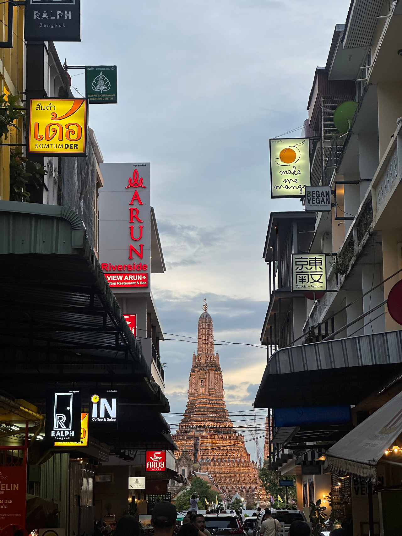 - 왓아룬 조망 골목(골목 사이로 보이는 왓아룬이 느낌 있다. 웨딩사진도 많이 찍는 핫 플레이스.)