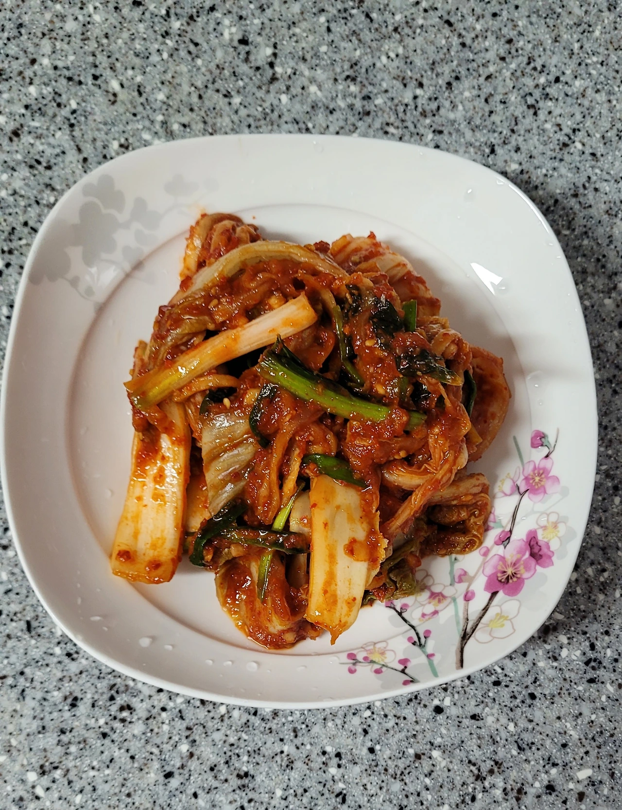 (1) 고객이 엊저녁 손수 담근 겉절이를 갖다주셨다. 정말 아주 맛있고 감사하다.