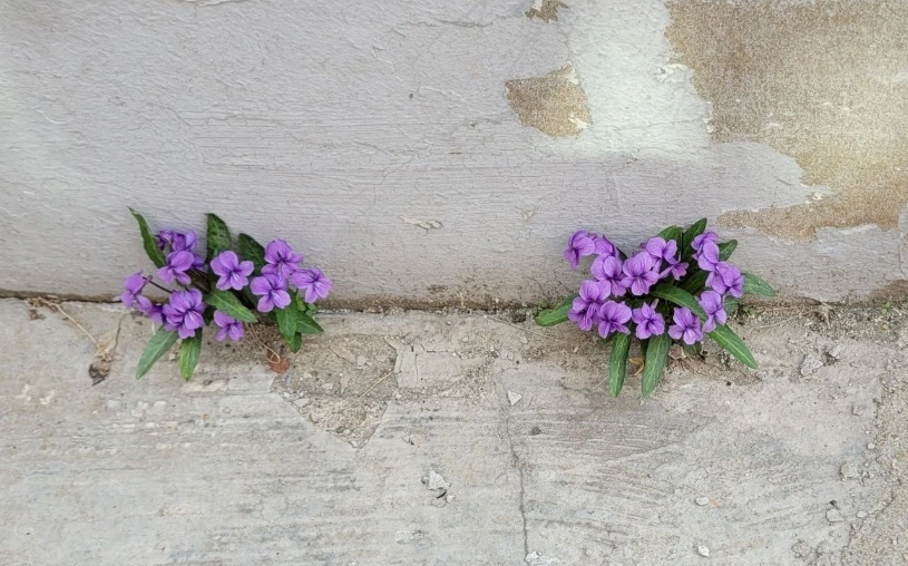 * 제비꽃이 담벼락에라도 붙어났다. *