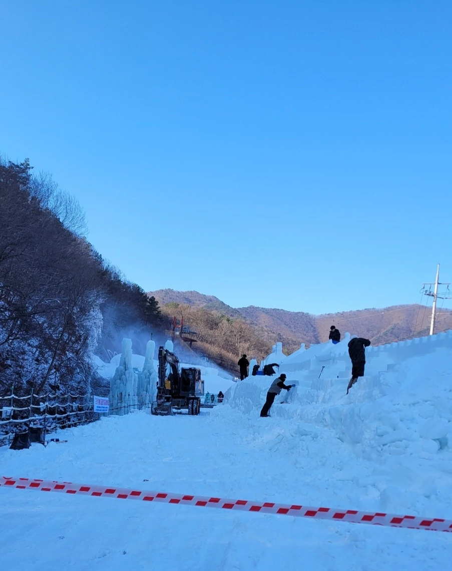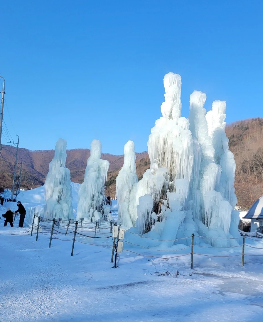 화천 축제 때 얼음 얼리고 조각 만드는 극한 작업 과정을 알고 난 후엔 거대한 썰매장은 피했어요. 엄동설한에 며칠씩 야간작업으로 고생하는 분들의 성에 낀 눈썹을 보면 오싹합니다.