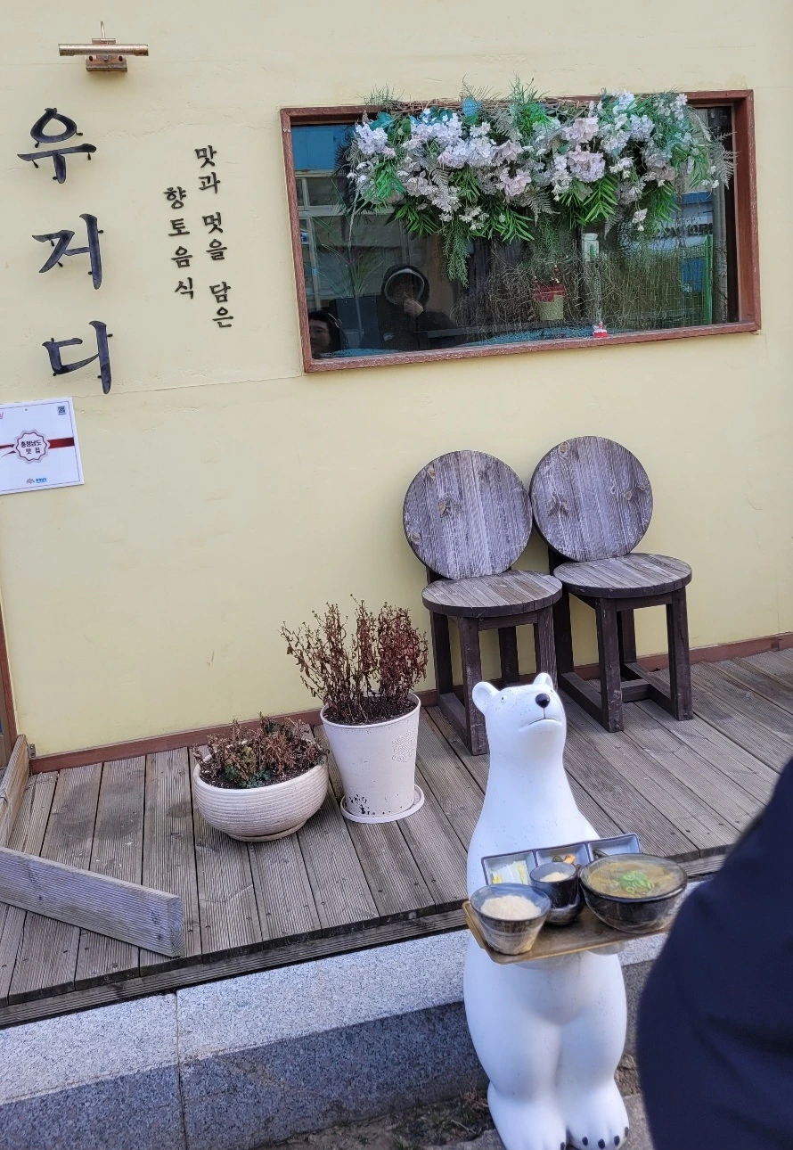 슬슬 고속도로를 탔는데 날이 훤하니 아산으로 틀어서 카페에 갔어요. 내가 좋아하는 곳이라는데 눈치를 깝니다. 역시 시골스러운 분위기에 기와로 지붕을 올린 인주 한옥점이었어요. 강쥐도 같이 들어갈 수 있는 야외 테라스는 온풍기가 켜져 있고 아늑해서 좋았습니다. 다른 팀의 여인이 계속 왔다 갔다 문을 열어젖히고 다니니까 다른 분이 잔소리 두 번을 했어요. 두 번째도 열어놓은 겁니다. 뭐가 급한지 얘기 소리는 급한 게 하나도 없던데요.