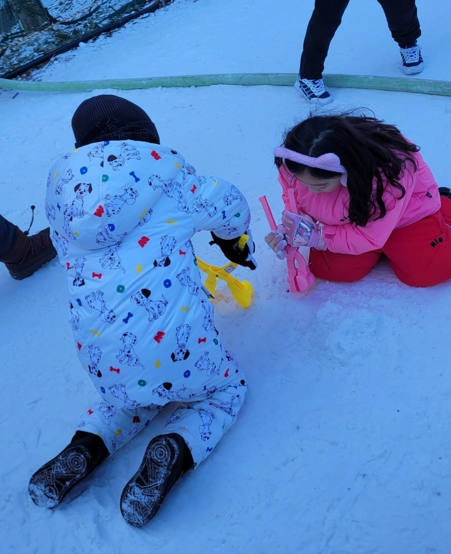 아침부터 예상했던 것처럼 눈이 부시게 햇살이 좋습니다. 눈썰매와 얼음 썰매를 타러 이름이 있다는 청양 알프스 눈꽃마을 축제에 먼저 당도했어요. 눈썰매는 타이어같이 생긴 둥근 것을 기계가 떠밀어 주어 스르륵 경사진 곳을 쑤욱 내려갔어요. 둥글게 원을 그리듯 내려가도 부딪히는 곳 없이 재미가 있네요. 어린이도 충분히 혼자 즐길 수 있습니다. 얼음 썰매는 한 사람이 들어갈 수 있게끔 양옆에 얼음벽을 쌓았는데 몸이 비뚤어지면 얼음벽에 팔꿈치를 내주며 쓸려가게 됩니다. 그래도 잡은 줄을 내려놓으면 절대로 안 되지요.