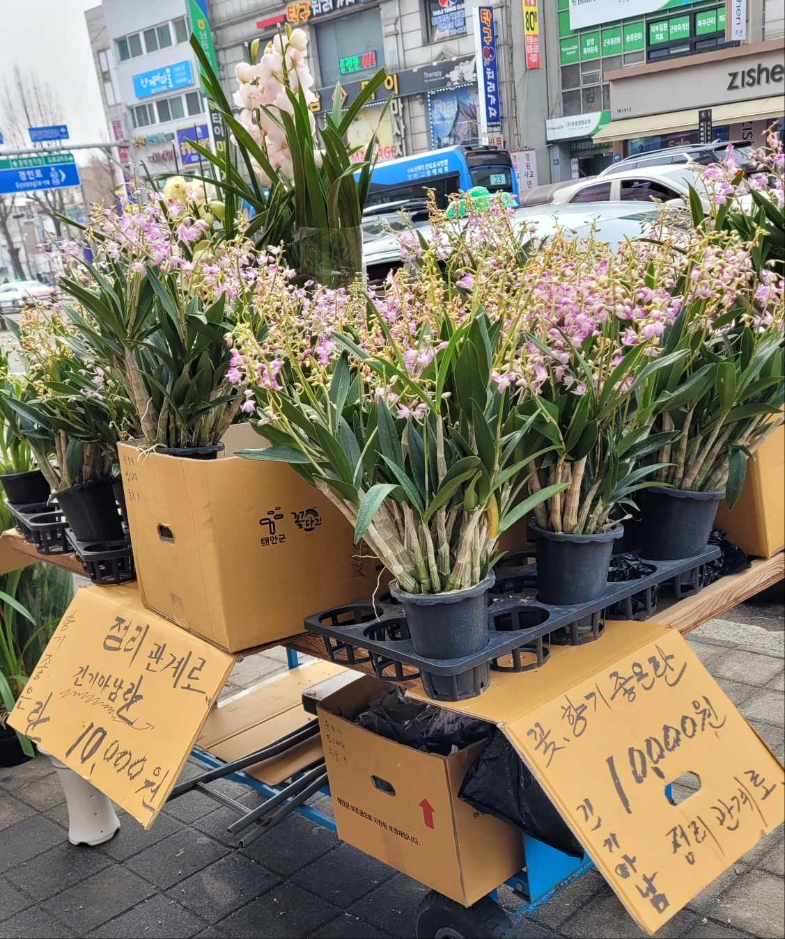 그리고 오전이 지나면서 시장길 저만치엔 이른 난들이 사람들 마음을 유혹하고 있었다.