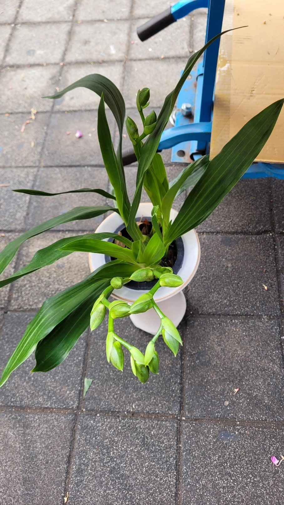 저만치서 손수레에 봄 인사 나온 난 화분들