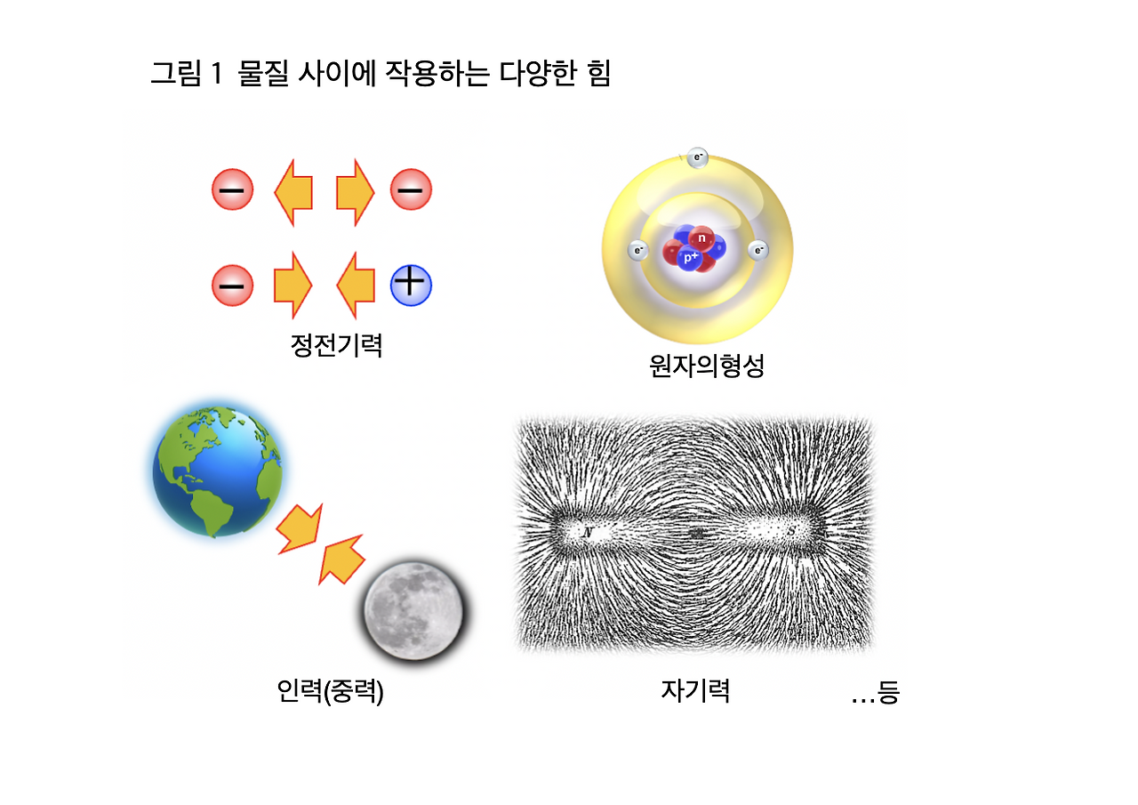 우리는 초등학교 과학시간부터 당연하게 '플러스와 마이너스는 서로 달라붙는다', '지구에는 중력이 있다'라고 배웠지만, 이것들은 선천적으로 그 성질을 가지고 있는 것이 아니라 '무언가에 의해 이런 힘이 부여되어 있다/무엇이 힘을 발생시키고 있다'라고 말할 수 있습니다.