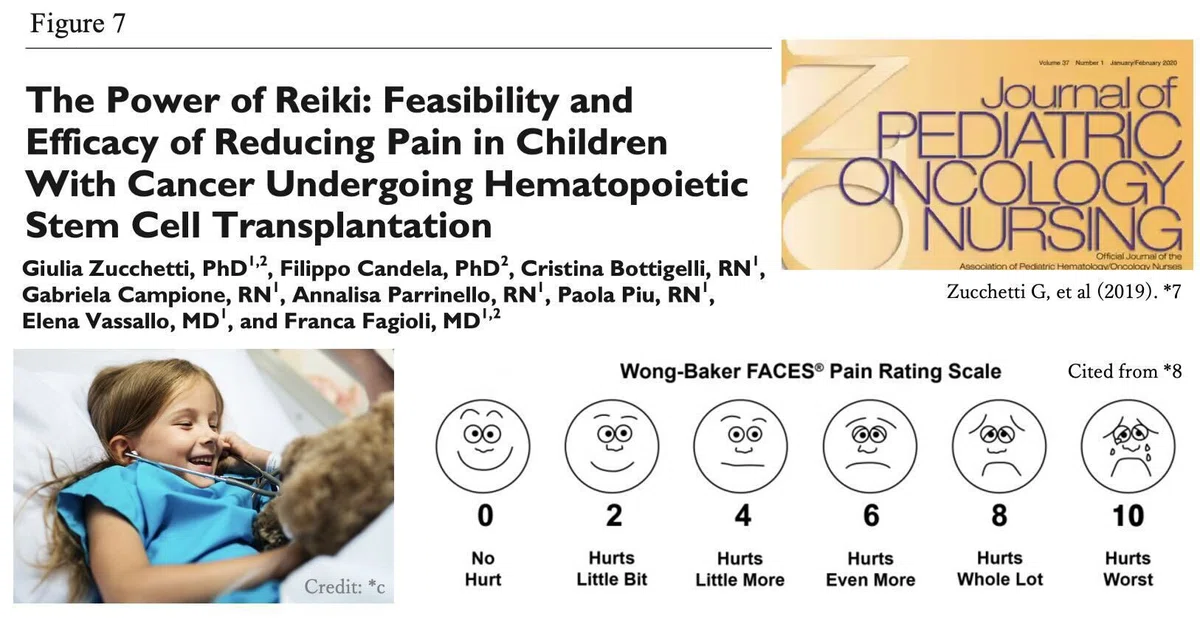 *7. Zucchetti G, Candela F, Bottigelli C, et al. (2019). 레이키의 힘: 조혈모세포 이식을 받는 암 아동의 통증 감소에 대한 실행 가능성과 효능. 소아 종양학 간호 저널, 36(5), 361-368.