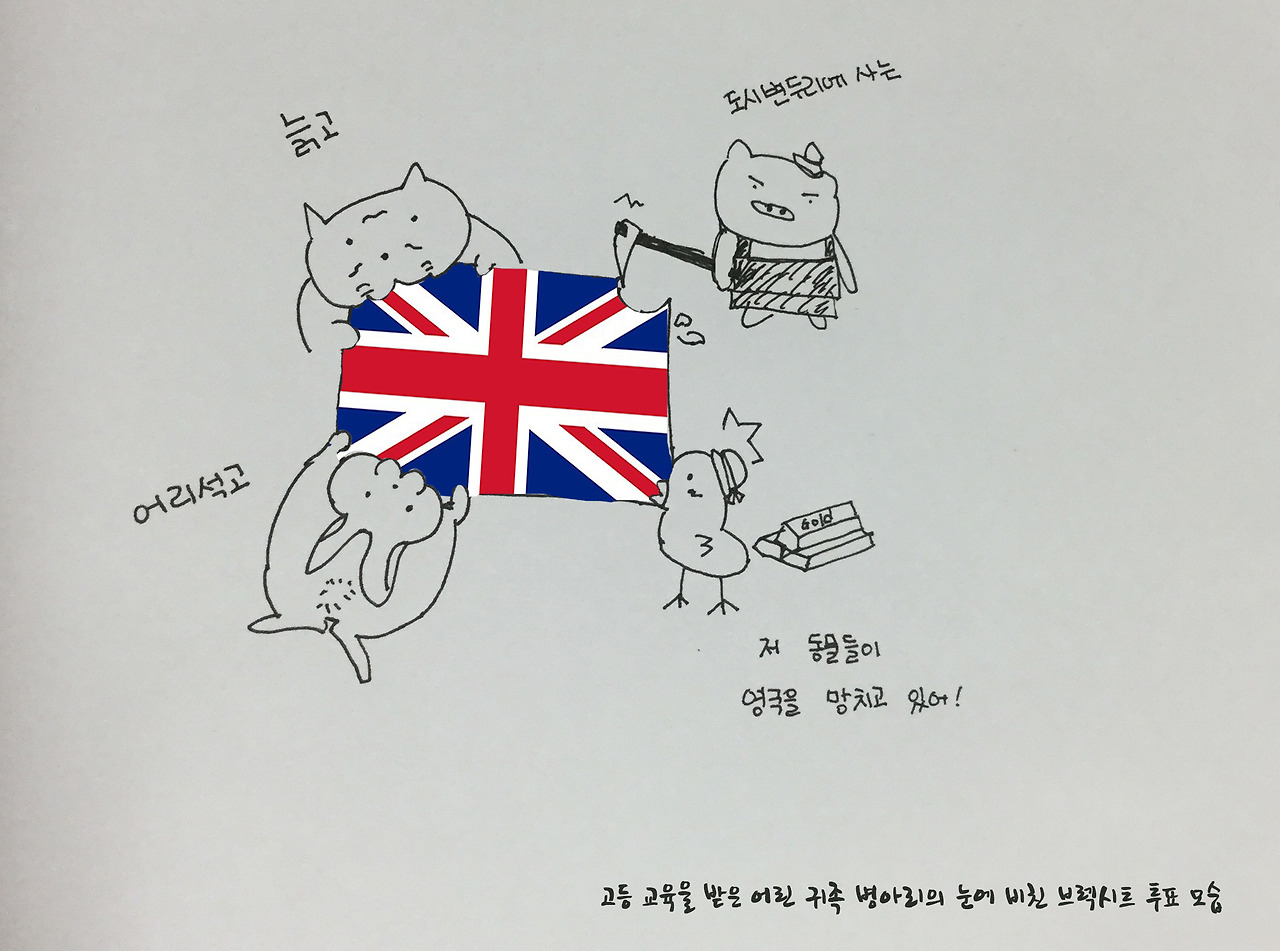 얼마 전 친구로부터 연락이 왔다. 프랑스인 친구를 사귀게 되었다며 그녀는 내게 셋이 같이 밥을 먹자고 했다. 취업준비를 핑계로 집에서 놀던 나는 프랑스인 친구라는 말에 신나서 약속 날짜를 잡았다. 프랑스에서 한국으로 온 지 이제 6개월이 넘었는데 아직도 그리운 나라다. 그 프랑스인은 H대학의 불문과 교수였는데 정치와 경제에 관심이 많았다. 나는 그와 이야기를 하던 중 브렉시트에 대해 물어봤다. 그는 36살이라는 꽤 젊은 나이에도 불구하고 영국 국민의 선택을 지지했다. 이기적이라며 영국을 비난할 줄 알았는데 그는 영국 국민들의 결정을 존중했고 심지어 부러워했다.