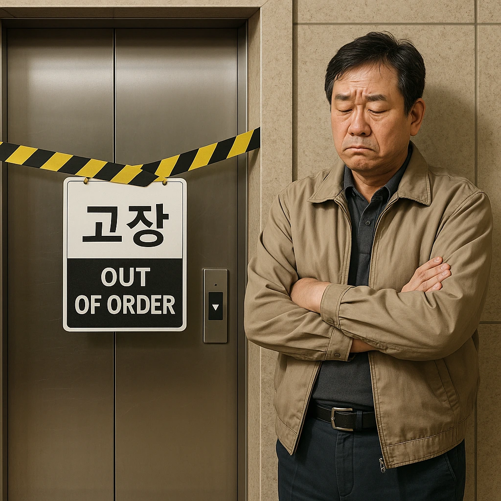 “어차피 고장 나 있으니 계단을 타자.”