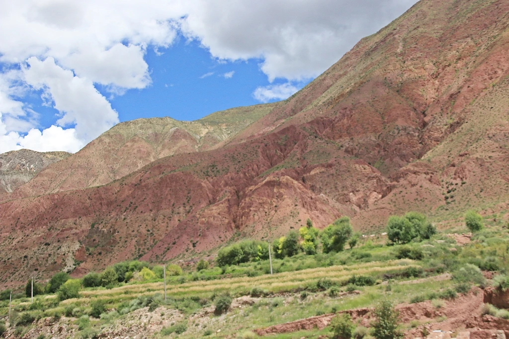 강을 끼고 살아가는 자그마한 마을 와다촌(瓦达村)을 지나니 서서히 산세가 완만해진다. 그리고 갑자기 산과 강이 붉은빛을 발산하고 있다. 이름하여 홍산하(红山河)다. 황토와 홍토가 산을 구분하고 산과 평지는 초록의 나무가 접선을 이룬다. 여전히 구름과 하늘은 햇살을 다투고 있다. 이 신비로운 산은 다라신산(多拉神山)이라 불린다. 동과 철, 아연이 많이 매장돼 있다는데 그래서일까? 오후 1시를 달리고 있지만, 아침이나 저녁이면 무지개처럼 다양한 스펙트럼으로 환생할지도 모른다.