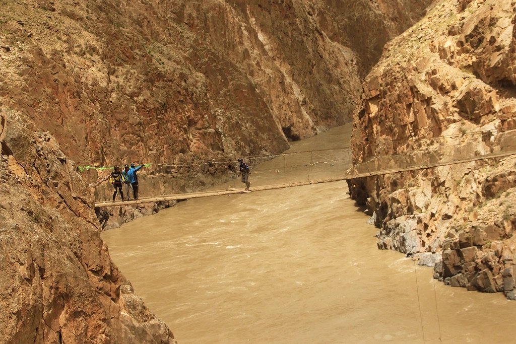 노강협곡을 잇는 다리 위를 걷는 사람들