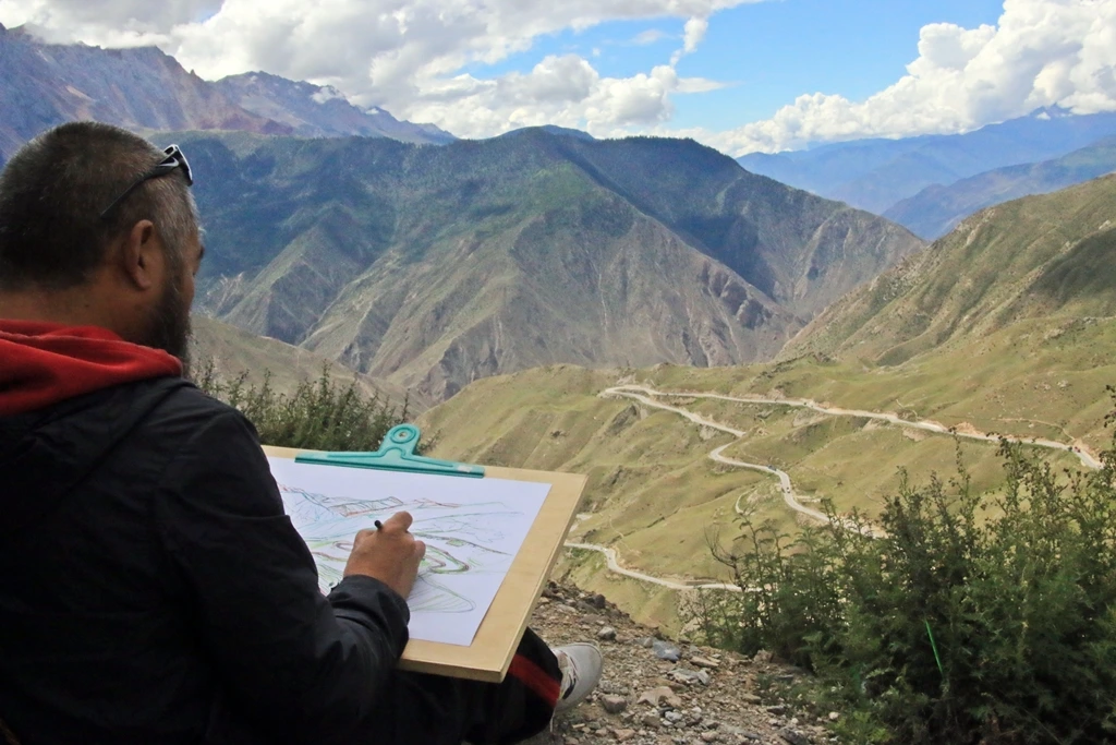 길을 그리는 사람이 있다. 바닥에 걸터앉아 도화지와 천로를 나눠 보며 색감을 덧칠하는 그는 무슨 생각을 할까? 여기에 선 사람 모두 어쩌면 한 가지 생각일지 모른다. 인생의 길을 떠올리며 천년 세월을 공들여 ‘성공적으로’ 만들어 놓은 마방을 생각할 것이다. 가파른 길을 오르려면 도대체 얼마가 고통스러웠을까? 거꾸로 오른다고 생각하면 정말 아찔하다. 길을 따라 그저 내려가면 되니 다행이다.