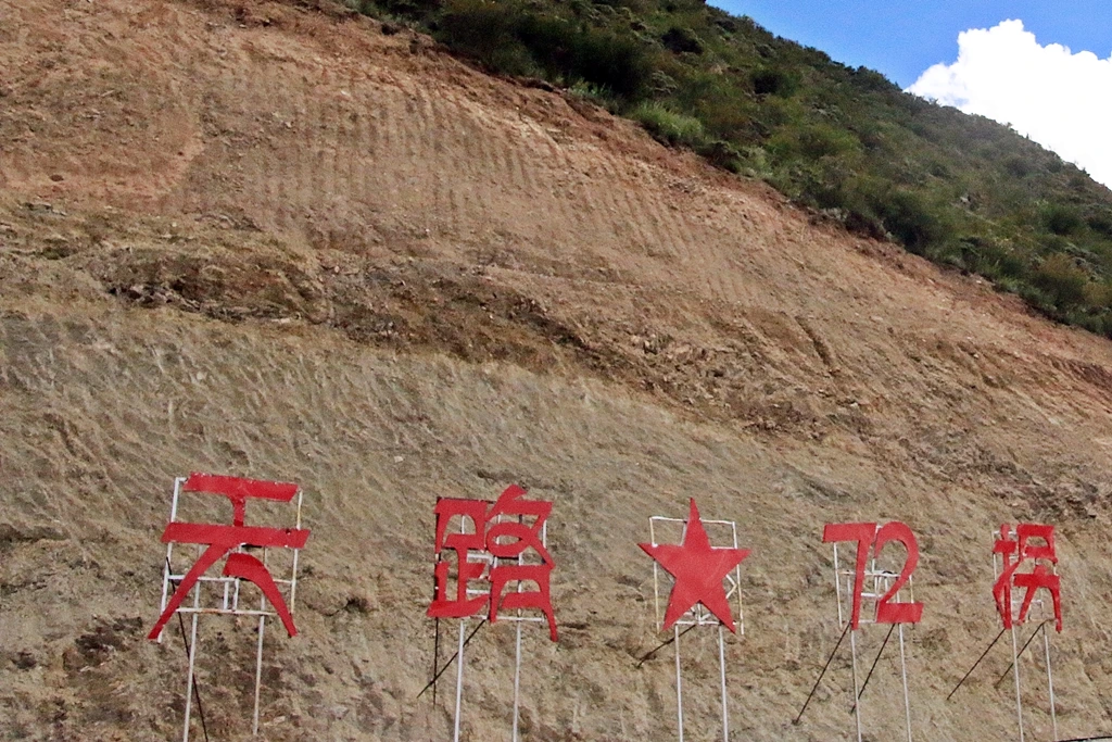 고개를 넘자, 펼쳐놓은 시야는 그야말로 장관이다. 구름 사이로 드러난 새파란 하늘로 햇살이 비친 산에는 굽이굽이 감도는 길이 이리저리 금을 그은 듯 나부끼고 있다. 가로와 세로로 오가며 오르내리는 길이 통째로 산을 다 삼킨 듯하다. 도대체 이 길은 누가 만들었으며, 만든 사람은 이 길을 뭐라 부르는 것인가? 뒤로 돌아보니 “天 路 ★ 72 拐”라고 별까지 붙여서 매달아 놓은 글씨가 보인다. 어림잡아 3m 정도인 쇠기둥을 다섯 개나 세웠다. 하늘로 오르는 길, 과이(拐, bend)는회전이니 72번이나 돌고 돌아야 도달하는 길. 그런데 굳이 별은 왜?
