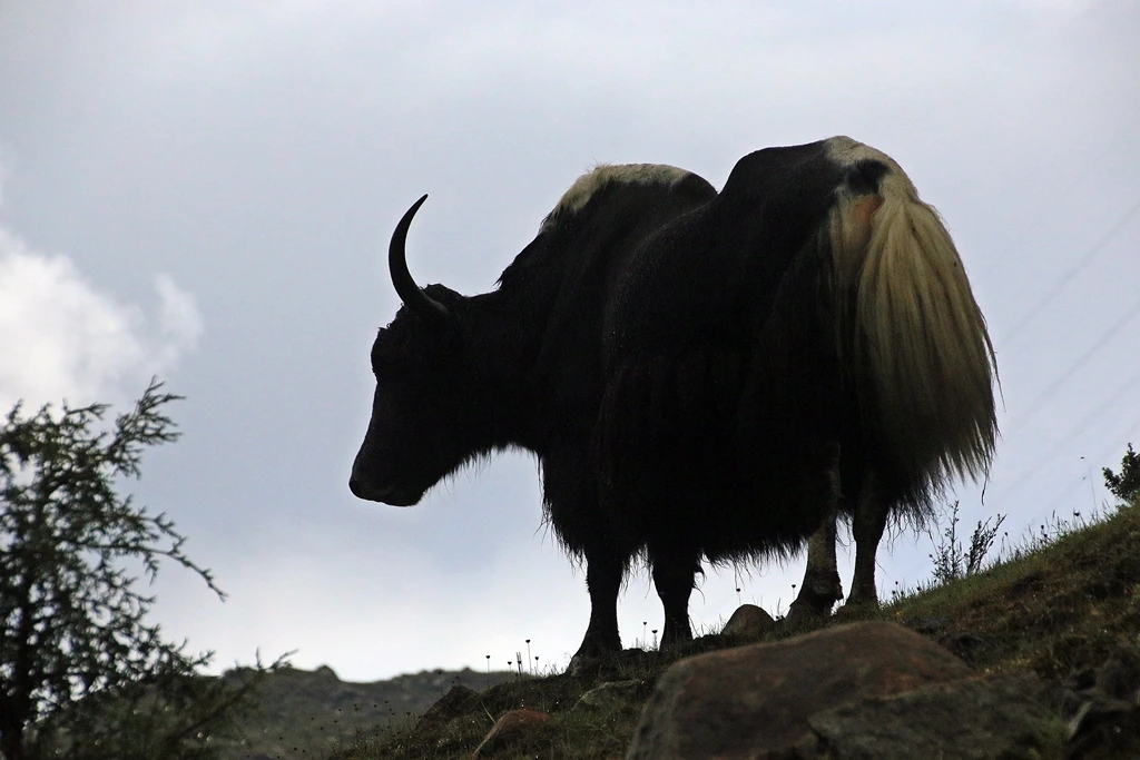 운무도 사라지고 조금씩 하늘이 보이기 시작한다. 길도 훨씬 좋아져서 평탄하게 질주로 이어진다. 차창 밖으로 사라지는 바람에도 여유를 가지고 손짓을 할 수 있게 된다. 빠르게 달리다가 반대편에서 대형차량이 오면 잠시 서행을 한다. 갑자기 창 밖으로 검은 물체가 나타나 잠시 놀랐다. 도로 옆 언덕 위를 어슬렁거리는 야크였다. 역광이라 실루엣으로 드러나지만, 뿔과 머리도 선명한 야크다. 다리도 튼튼해 보인다.