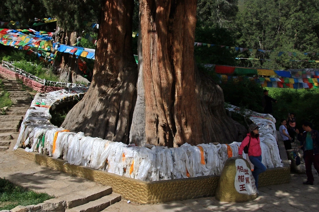 신수(神树)라부른다. 당연히 성지(圣地)다. 기원전 1,200여 년으로 거슬러 오른다면 아마도 티베트 전통신앙이자 원시 불교인 본교와의 긴밀한 교감이 보일 듯하다. 석가모니 전생에서 사부로 등장하는 본교 창시자 센랍미우체(辛饶米保, Senrab Miwoche)의 생명과 영혼이 깃든 나무로 불린다. 오색찬란한 다르초를 휘감아 걸었으며 누구도 쉽게 접근하지 못하도록 하얀 스카프인 카딱(哈达)으로 치장을 했다.