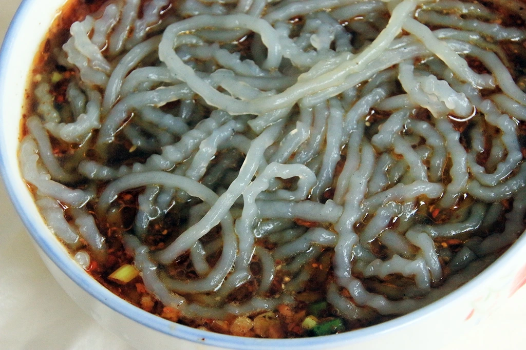 점심시간이다. 정확하게 1시 30분. 벌금이 날려버린 시간만큼 에누리 없다. 국도 옆 자그마한 동네 이름이 쑹둬일촌(松多一村)이다. 소나무와 아무 상관없다. 티베트 말로 무슨 뜻인지도 궁금하지 않으니 ‘식후경’이나 해야겠다. 메뉴에 눈에 쏙 들어오는 게 나타난다. 바로 페이창펀(肥肠粉)이다. ‘페이창’은 ‘대단히’ 강조나 비하할 때 쓰는 ‘페이창(非常)’과 성조만 다르다. 보통 ‘펀’은 가루를 원료로 만든 국수다. 고구마 분말로 만든 국수에 돼지 내장으로 우려낸 육수가 합쳐져 맛이 ‘페이창하오(非常好)’다. 속이 다 시원할 정도로 얼큰하고 시원하다.
